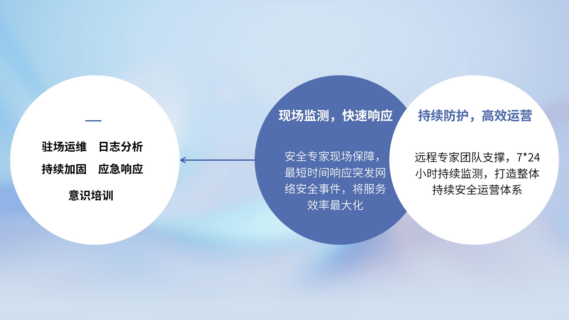 7X24小时持续监测安全事件,保持安全策略有效性,降低资产脆弱性风险,,,精准拦截黑客攻击,,减少被黑客利用的机会,,,,第一时间遏制,,降低损失。。。。