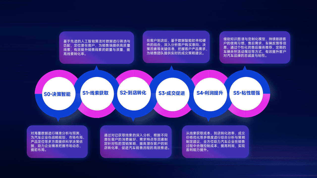通过拓宽潜在客户来源、、优化线索分配并提高到店转化率,,,以增强销售效率。。。。同时,,利用线索数据不断优化分析模型,,有效提升转化率,,扩大营销影响力。。。